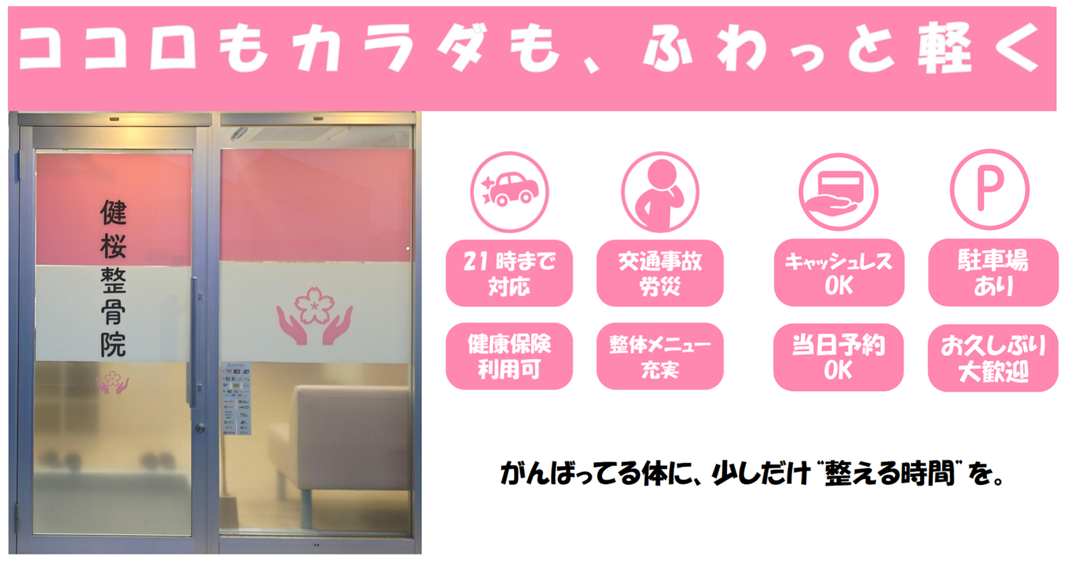 浦安富士見の「健桜整骨院」のホームページをご覧いただきありがとうございます。